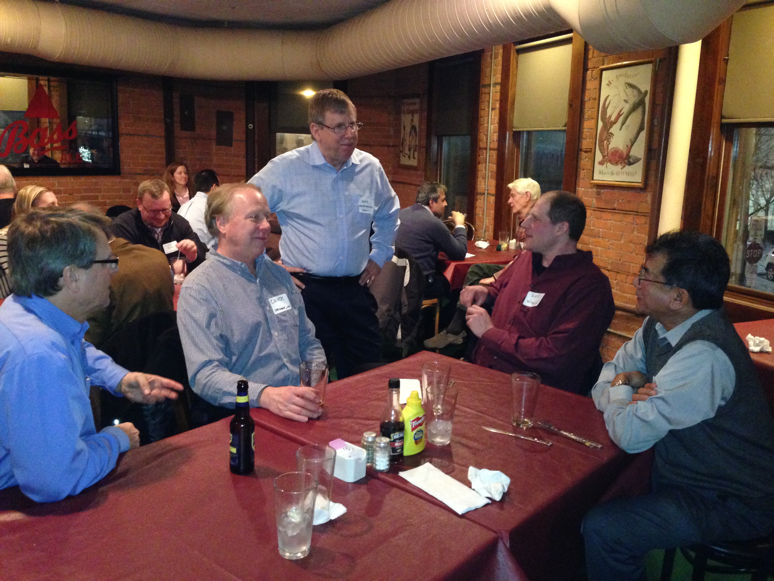 Unusually (for Winter 2016!) cold and snowy weather did not keep a good crowd of environmental, health & safety professionals and college students away from the “Lucky 13” Networking Social on February 25th. The event returned to the Flat Iron Café in the Flats this year. Participants enjoyed a complimentary selection of pizza and chicken wings as well as a 4’ sub and veggy platter, compliments of the following generous sponsors: Northeast Ohio Chapter of Hazardous Materials Managers, Northern Ohio Chapter–Air & Waste Management Association, Northern Ohio Chapter–American Society of Safety Engineers, and The Auditing Roundtable–Ohio River Valley Region. Thanks to the long-time support of these great organizations, the Networking Social has brought EH&S colleagues together for a relaxed evening of good conversation and renewing of acquaintances since 2004.